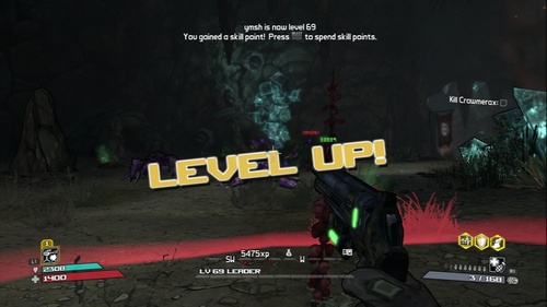 もちろんスキルポイントも解放されたレベルの分だけ(+8)貰えるので更にスキルを強化することが出来る。経験値稼ぎにはお馴染みのlost CAVEが一番簡単かつ効率が良い。Larva Crab Wormは経験値も5000xp前後と豊富でクリティカルヒットで簡単に倒せます。それに入り口付近に出現するためセーブ&ロードでマラソンするのに時間もあまり掛からないのが嬉しいところ。他にも炎や電気を帯びた中型のSkag系は経験値が10000~20000xpほど貰えるが非常に堅いので無理に倒す必要は無い。Skag系も倒して経験値稼ぎをする場合はエレメンタル系の武器で大きな継続ダメージを与えて倒すのが楽です。