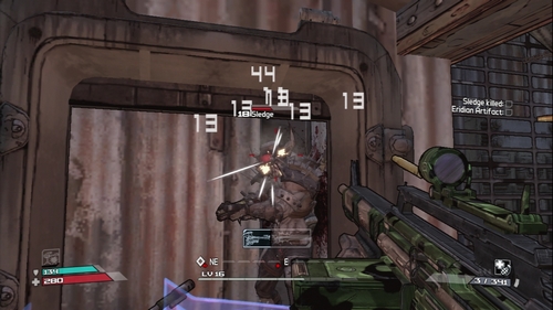 後になって気づいたんですが柱などの障害物を利用して倒す手もあったみたいですね…>< 倒すとSledge’s Shotgunを落とします。コイツしか落とさないみたいなので拾っておく。所謂ユニーク武器ってヤツかな?