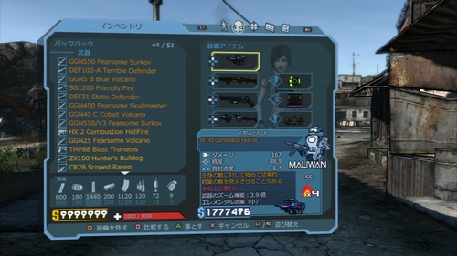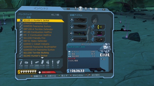 武器の熟練度見る限り、どの武器を使い込んでいるか丸分かりですね。エイリアンライフル全く使ってなかった…基本的に各属性のSMGがメインでサブにピストル/リボルバー、あとはショットガンを比較的よく使用していました。