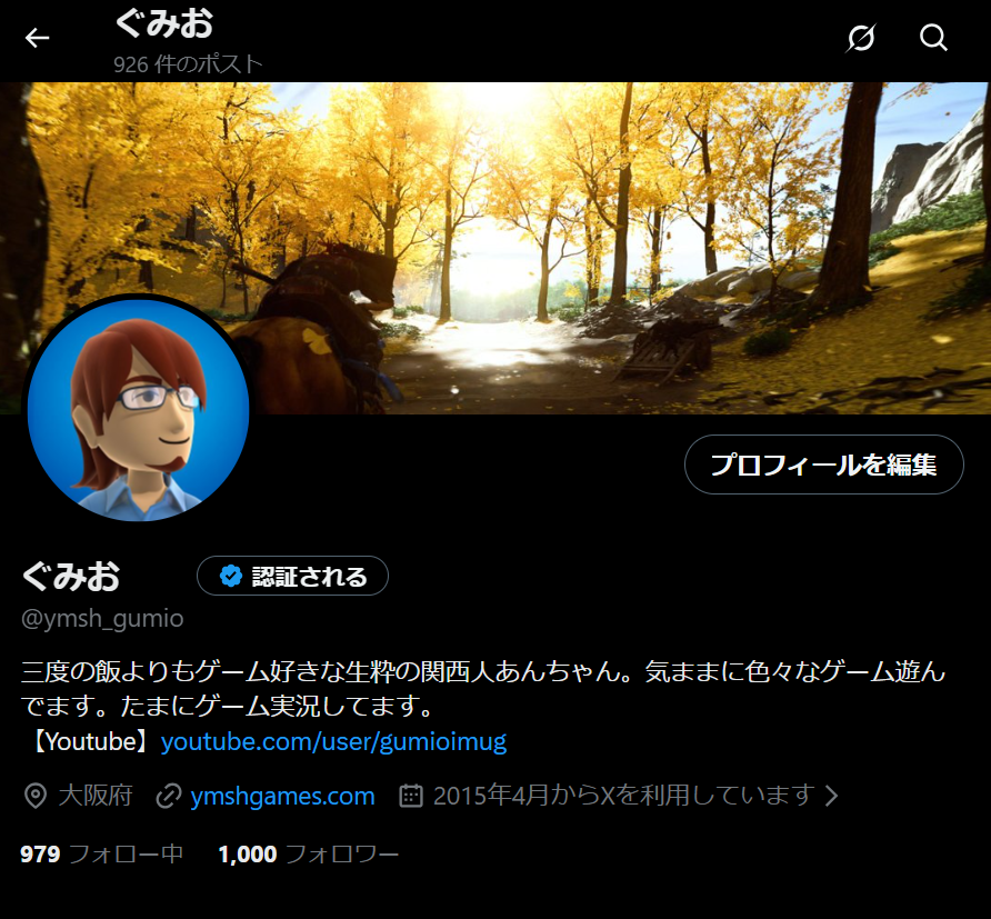 2026年の目標の一つに掲げていた”Xフォロワー1000人”を2月に達成。ありがたや…殆どゲームのプレイ記録のポストしかしていないが、私が遊んでいるゲームにちょっとでも興味を持ってもらえればこの上なく嬉しい限りである。 これからもゲーマーの輪を拡げていきたい。ゲーム関連の方は基本的にフォローバック中。次は5000人を掲げておこう。