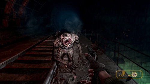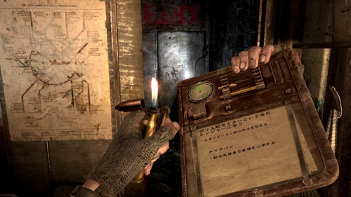 他にもフラッシュライトなどは使い続けていると徐々に光が弱くなっていき明度や照らせる幅が悪くなっていく。一般的なFPSならずっと付けっぱなしでも大丈夫もしくは一旦光が消えてしばらくするとまた使えるといった感じですが、本作では携帯式の万能充電器をいちいち用いてボタン連打でフラッシュライトなどを充電する。こういった普通に考えてみれば面倒に思えてしまうような要素も『Metro 2033』では演出に繋がりゲームを奥深くしている。
