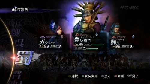 プレイアブル武将の数は前作から大幅にアップして驚異の132名、上述の作品の全ての武将が参戦しているのは勿論のこと、元のシリーズではリストラの憂き目に遭った武将もこちらでは全員参戦します(左慈・宮本武蔵・佐々木小次郎・石川五右衛門など)。
