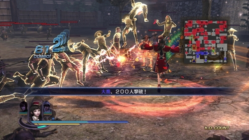 ワラワラ感、というよりも敵の多さは1000人斬りは当たり前でその気になれば2000~3000人斬りも狙えるので非常に多い。しかし、どうしても処理の関係でステルスを完全に除くことはできないみたいで、混戦時には兵士や武将の姿が見えなくなりやすい。そのため、自分の周りの敵を一掃にする→ステルスで見えてなかった敵がいきなり周りに大勢出現といった状態になります。