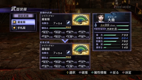 武器属性は前作よりも種類が増加し幅広くなりました。前作ではレア属性は別枠でしたが、今作ではレア属性も他の属性と同じ枠に。上昇値こそ低くなったものの、攻撃速度が上がる「神速」が今作では全攻撃に適用されるようになったのは嬉しい調整です。さすがに前作で猛威を振るったバランスブレイカーこと「天舞」は今作では調整されています(それでも十分強いですが)。