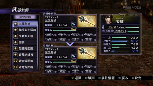 テクニックはこの中でも特に大きく仕様変更されていて、前作までのテクニックタイプとは完全に別物になってしまいました。Exチャージ・ExSPチャージ・Exカウンターは全て廃止、その代わりに『戦国無双3』で取り入れられたステップ移動が使えます。他のタイプと比べると仕様変更に伴って特徴も無くなってしまった不遇なタイプです。正直、ステップ移動なんて使わないよ…