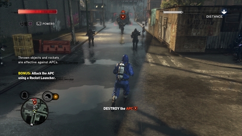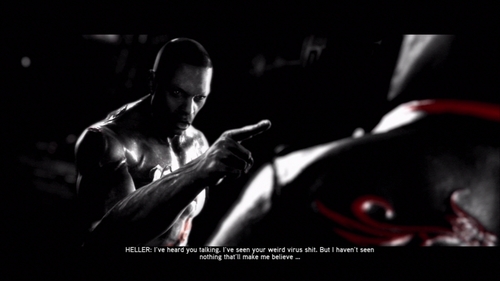 そして、右の人物が前作の主人公“Alex Mercer”。フードの悪魔と呼ぶに相応しいほど前作で暴れ回った危ない人物。当の本人は既に死んでおり、このAlexはウイルス自体が本人を取り込んで形成したものであり厳密にはAlex本人ではない。また、Alexはウイルスをばら撒いたことは濡れ衣と否定した上で、このように陥れた連中を潰すために手を貸せというが…って、あれ?前作の話では結局Alexのせいでウイルスがばら撒かれていたことが分かった気がするけど、これは一体…?