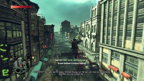 さて、前作主人公の“Alex Mercer”がばら撒いたとされるウイルスが原因で妻と娘を殺された今作主人公の“James Heller”。家族を失い自暴自棄になったHellerに残ったのは事の発端であるAlexに対する異常なまでの殺意、そして復讐心だった。ウイルス感染が酷く最も危険な「Red Zone」でAlexを目撃したという情報を頼りにHellerは軍部に自ら志願しその場所へ赴く。しかし、そこでAlexの襲撃に遭いHellerの部隊は壊滅。辛くも生き残ったHellerはAlexに復讐を果たそうとするが返り討ちにされ、Alexの手によってウイルスを注入されてしまう。だが、奇しくもHellerはこれに適応し超人的な進化を遂げることになる。