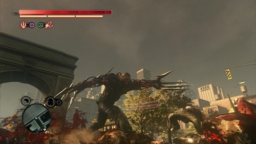 全体的に前作よりもより遊びやすいように調整されているのですが、個人的にちょっと気になったところを挙げるとすれば、Muscle Mass、Artillery Strike、Armored Formが削除されたのが残念。前作で割と使っていただけにショックです…特にArmored Formは無くしちゃ駄目でしょ…あれで似非仮面ライダーごっこするのが『PROTOTYPE』の醍醐味なのに。一応、有料DLCでArmored Formは配信されているのですが“スキン”のみ。見た目が変わるだけで本来の効果は備えていない。あと、前作よりも技のバリエーションは減った。というよりもあまり使われなかったような技を無くしてスッキリさせた感じかな。