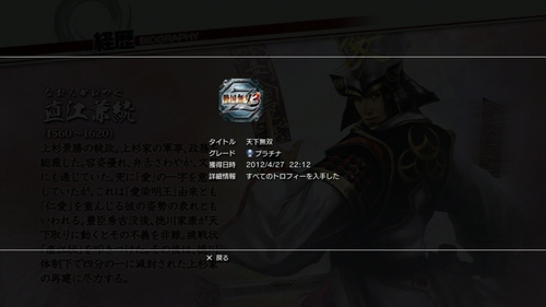『戦国無双3 Z』プラチナトロフィー獲得!義と愛の名のもとに私は無双ファンとしての気概をここに示したぞ!