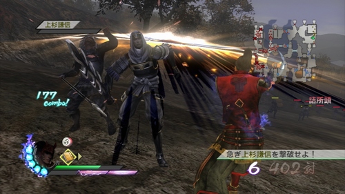 ルールは「剣豪」「踏破」「飛沫」の三種類でそれぞれの打ち立てた記録は任意でネットワークランキングにも登録できる。「剣豪」は10分間で撃破数を競い、「踏破」は最速で城の頂上まで目指し、「飛沫」は10分間で敵を場外落下させスコアを競います。公正を期すため武将の能力値や装備は固定されていて変更できない(ただし、階級1の状態ですがアクションは全て使用可能)。因みにこれらの『戦国史』『腕試し』もトロフィーの条件となっているのでプラチナトロフィーを取得する上では避けては通れない。