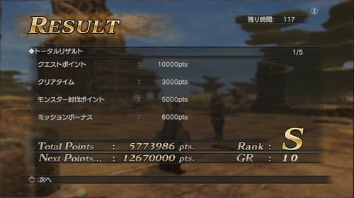 何も集めずにそのままボス戦にいけばトカゲ4匹だけを倒せばいいので2分程度でクリア可能。1回で10,000pts丁度貰えるので効率考えればなかなか良かったです。ただ完全に作業化してましたけど(-.-;) 何度同じクエストに通い何度同じ敵を倒したかもう忘れてしまいましたが、そのおかげでようやくGR:10に昇格しました。