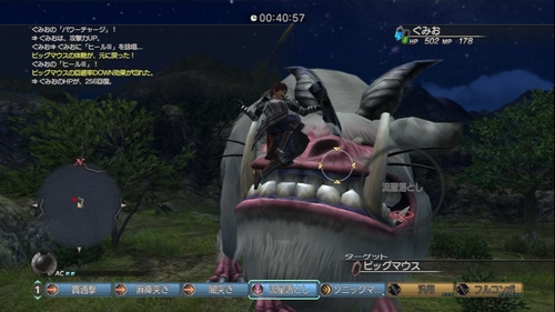 でも少しでも油断していると一瞬で体力が減るので倒すにもなかなか苦労します。一対一の場合では、むやみやたらに攻撃をしまくるよりも敵の行動を読んで戦うと結構戦いやすいです。敵が攻撃のモーションに入った瞬間(攻撃を受ける直前)にヒールなどを詠唱すればダメージこそ喰らうものの、こちらは本来ダウンするはずなのにそれを回避してそのままヒールを詠唱することができたりするので、そういった小技も使いつつ戦えば戦闘に少し余裕を持つことができます。特に詠唱時間の長い魔法はこの方法を使ってやるとかなり安定して発動することができるので覚えておこう。