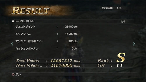 さて、ようやくGR:11に突入したわけですが…現段階でソロでSランククリアできるGR:11のクエストが一つも無い。クリアするだけなら可能なクエストはありますが、ソロでSランククリアを狙えるクエストは無さそうだ。GR:10の時はソロでもSランクでクリアできる「迷子を捜して-III」があったのでそれを軸にして育てていくことができましたが、GR:11クラスのクエストは全てに大型モンスターとの戦闘が組み込まれているので詰んでる。可能な限りは一人の力でなんとかしようと思っていましたが、その強がりは見事に打ち砕かれました。