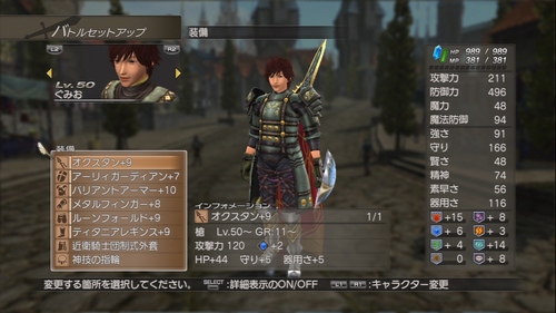現在の装備状況ですが、度重なるクエストで素材を集めてついにGR:11装備を整えました。まだ自分の理想としている完全な装備ではありませんがこれでも十分強い感じなので満足しています。守り槍装備なので防御力はかなり高くなっていて物理攻撃には非常に打たれ強いのですが一方で魔法攻撃には苦しい。GR:11では魔法を使ってくる敵(ゴーレム系など)も多いのでもう少し魔法防御を上げておきたいところ。