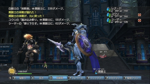 巨大な者同士が戦う様はまさに特撮の巨大ヒーローモノの如く演出となっています。『古の鼓動』で確認できたシンナイトは4体、他にも存在するみたいですが『古の鼓動』では登場せず。レナードの白騎士、シーザーの竜騎士、ドレギアス将軍の黒騎士、グラーゼルの太陽王が本作では登場する。ヒロイン(?)のユウリが竜騎士になるもんだとばかり思っていたのでシーザーが竜騎士の契約者になったのが意外でした。