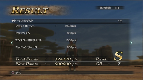 ボス戦でありったけのコンボをかましてやれば1~2分程度で決着が着きます。F-7への移動やACの回復などを含めても大体5~7分もあればクエストを達成できるはず。この方法だと5600ptsは堅いので序盤のポイント稼ぎにオススメです。これでGR:7ぐらいまでは上げられます。でもGR:8まで上げるには少ししんどいかも。