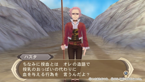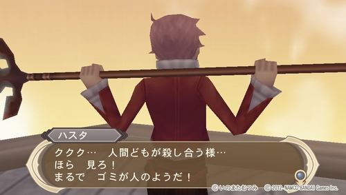 さて、冒頭でも少し触れていました通り、ハスタのキャラクターが強烈すぎて作品の印象が全部コイツに持っていかれてます。DS版でもコイツが出る度に本能が危険を感じるレベルで狂ってるって思いましたけど、それはPSV版になっても相変わらず。エルマーナ曰く、ハスタの会話を聞いていると「胸焼けする」と言っていましたが正しくその表現通り。ある意味凄い気質です。以下の画像を見ていただければ大体どんなキャラクターなのか分かるはず。とにかく常人には理解できないキャラクターです。
